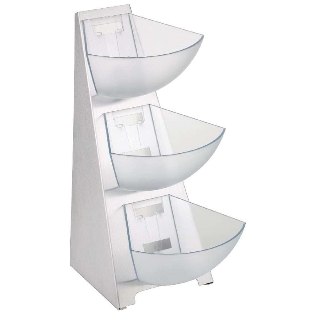 3 Tier Multi Rack for buffet displays features durable stainless steel and plastic construction. Weighing 780g, this versatile stand includes 1-liter bins, ideal for organizing condiments and enhancing food presentation. Its compact design maximizes space while providing easy access to essentials. Perfect for catering, parties, or everyday use, this rack combines functionality and style. Keep your buffet neat and appealing with this practical solution.