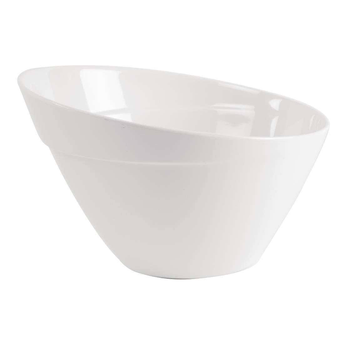Shop the APS 1.5Ltr Balance Bowl, designed for buffet displays and food service. This 52¾oz melamine bowl features a stylish sloping shape and a collar design for easy stacking. With non-slip rubber feet, it ensures stability on any surface. Weighing 480g, it's dishwasher, fridge, and freezer safe for versatile use. Perfect for serving salads, snacks, or desserts, this bowl combines practicality with an attractive look. Ideal for any catering or dining setting.