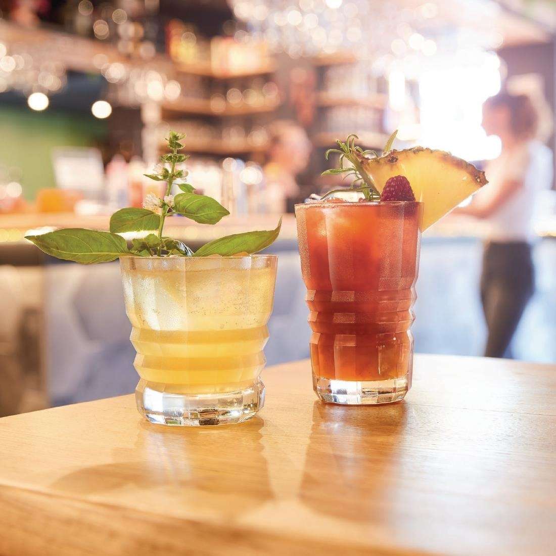 Recreate the speakeasy style of the Roaring Twenties with these Arcoroc Louisiane tumblers. The ultra-transparent glass features intricate detailing to beautifully showcase the colours and textures of different drinks, from vibrant cocktails and freshly-squeezed juices to whiskey and bourbon on the rocks.