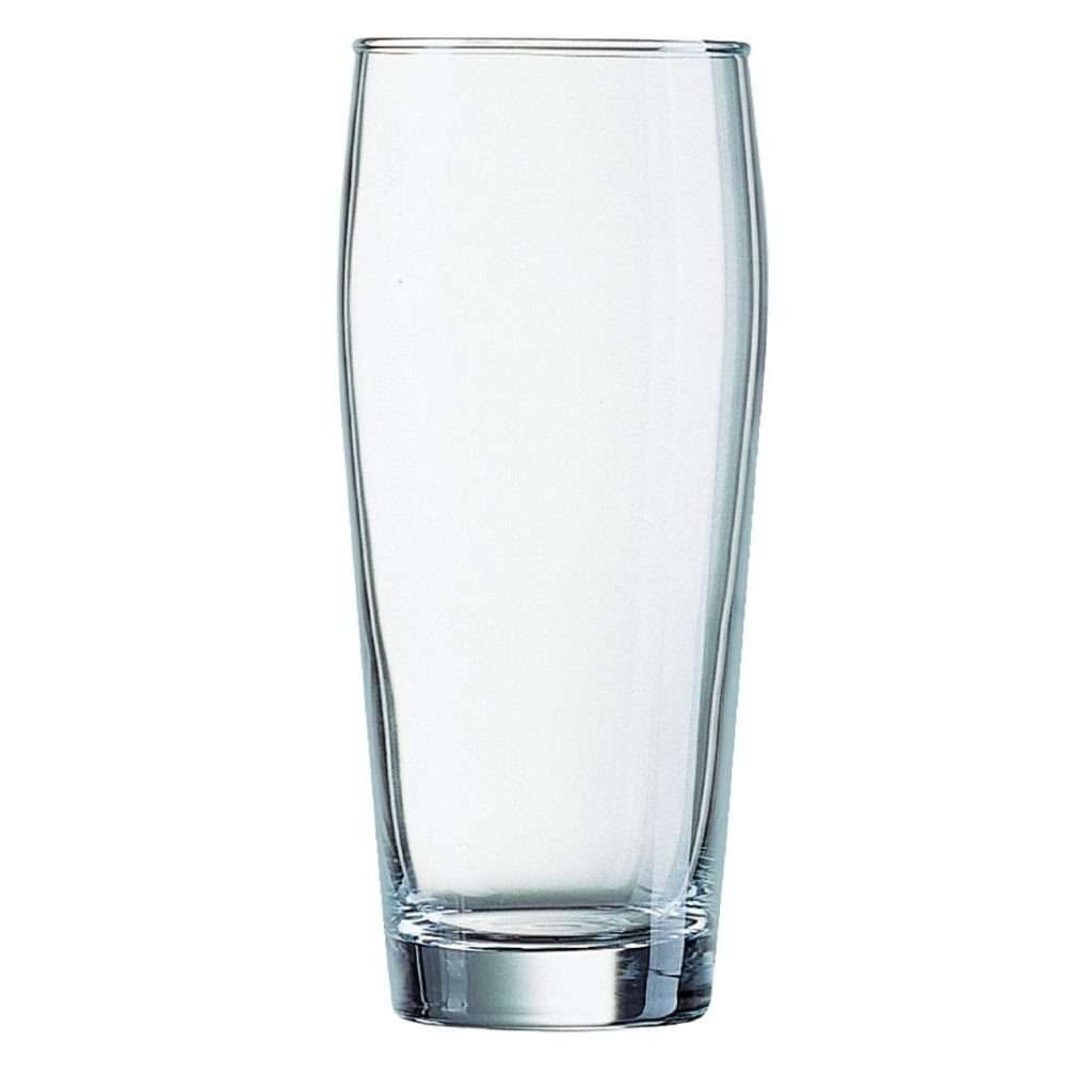 Serve beer and soft drinks in style with Arcoroc Willi Becher tumblers. These 400ml conical glasses, measuring 149mm in height and 73mm in diameter, feature an ergonomic design for a comfortable grip. Made from durable soda-lime glass, they withstand the rigors of busy bars and are dishwasher safe for easy cleanup. Each tumbler is lined and CE marked for half a pint, making them perfect for draft service. Enjoy reliable quality and classic Bavarian charm in every sip.