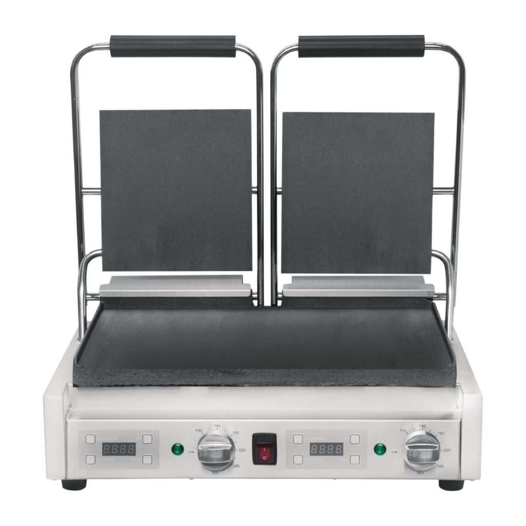 Buffalo Double Contact Grill offers powerful electric cooking with flat plates, perfect for grilling sandwiches, meats, and veggies. Made from durable 430 stainless steel, it measures 2x210x226 cm and weighs 28.5 kg, ensuring stability during use. With a power output of 2.9 kW and a voltage of 230V, this grill is efficient for busy kitchens. Enjoy a 2-year warranty for peace of mind. Ideal for restaurants and catering, this grill is designed for consistent performance.