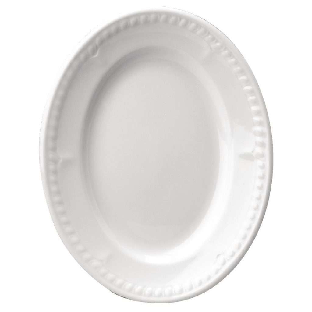 Buckingham white oval shaped platters have a distinctive rope embossed Gadroon edge and subtle fluting, perfect for any catering establishment looking for a more traditional style of tableware. Its super vitrified body has a high resistance to thermal shock which helps reduce breakages.Churchill Super Vitrified is one of the strongest ceramic products in the world, created by an established and trusted crockery manufacturer with over 200 years of expertise. Product material is Vitrified Porcelain and is completely dishwasher safe.