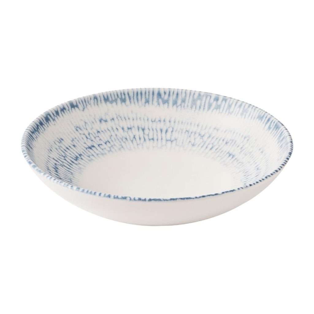 Churchill Cascade Coupe Bowls in indigo are perfect for stylish dining. Each bowl measures 182mm (7¼") and is crafted from durable super-vitrified ceramic, ensuring resistance to chipping and staining. The unique ripple design improves food presentation while the coupe shape keeps sauces contained, minimizing spills. Ideal for restaurants or home use, this pack of 12 provides consistent quality for your table setting. Enjoy easy cleaning with dishwasher-safe convenience.