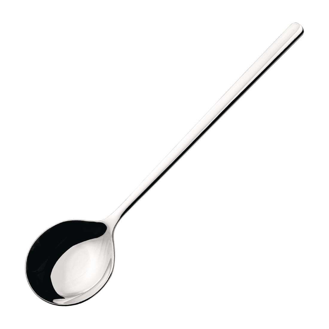 The Atlantida collection is fully dishwasher safe, making it ideal for fast-paced commercial kitchens. For best results and to preserve the mirror finish, avoid leaving the spoons to soak, rinse off acidic foods immediately after use, and dry them promptly after the wash cycle.