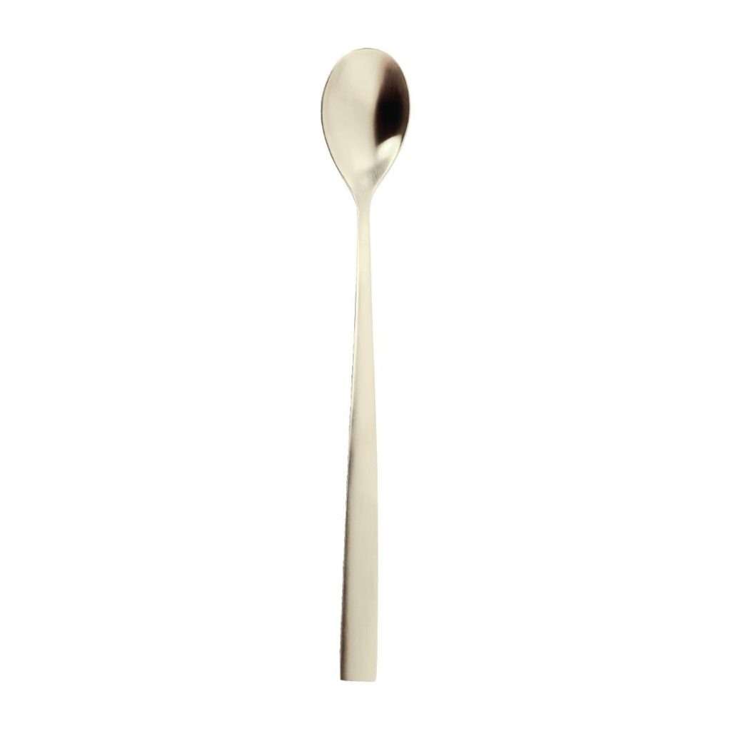 Champagne Soda Spoons (12 Pack) your dining experience with a sleek, modern design. Made from durable 18/0 stainless steel with a gold PVD coating, these spoons resist stains and maintain their shine. Each spoon measures a perfect size for serving desserts or cocktails, making them ideal for both formal and casual gatherings. Weighing just 50g, they're lightweight yet sturdy. Enjoy quick cleanup as they're dishwasher safe. Delivery is within 5-7 days.