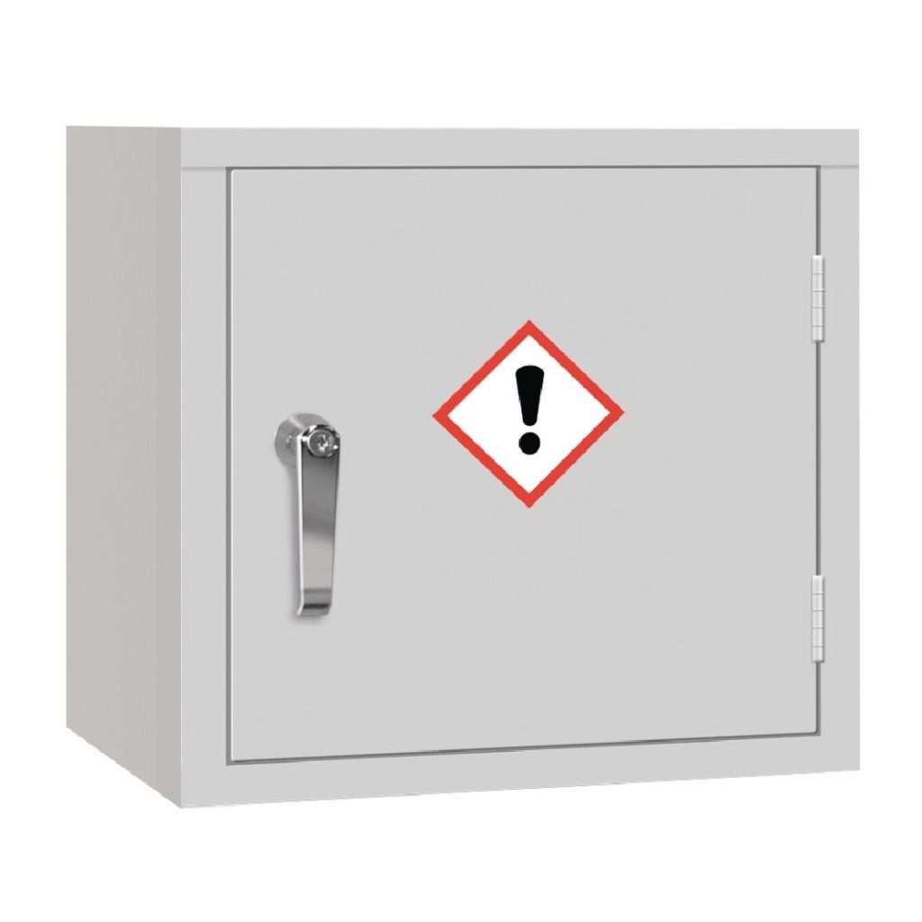 COSHH Cabinet Single Door Grey 3Ltr is essential for safe storage of hazardous substances. Made from durable steel, this lockable cabinet weighs 18kg and features a leak-proof recessed base for added safety. Clearly labeled 'Irritant & Harmful', it ensures compliance with UK regulations. Ideal for workplaces needing secure storage for cleaning chemicals and other harmful materials. Supplied with two keys for easy access. Keep your environment safe and organized with this reliable solution.