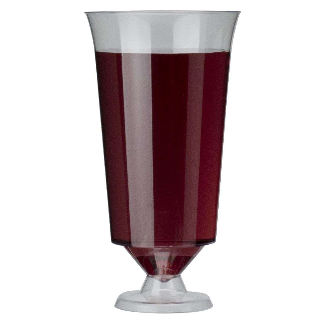 Keep customers safe without sacrificing on style, using this pack of 235ml eGreen disposable wine glasses. A short stem and curved edges give these plastic wine glasses all the sophistication of traditional glassware without the risk of guests being harmed by shattered glass. The sturdy polypropylene material also ensures these glasses have more than enough strength to last busy services without breaking.