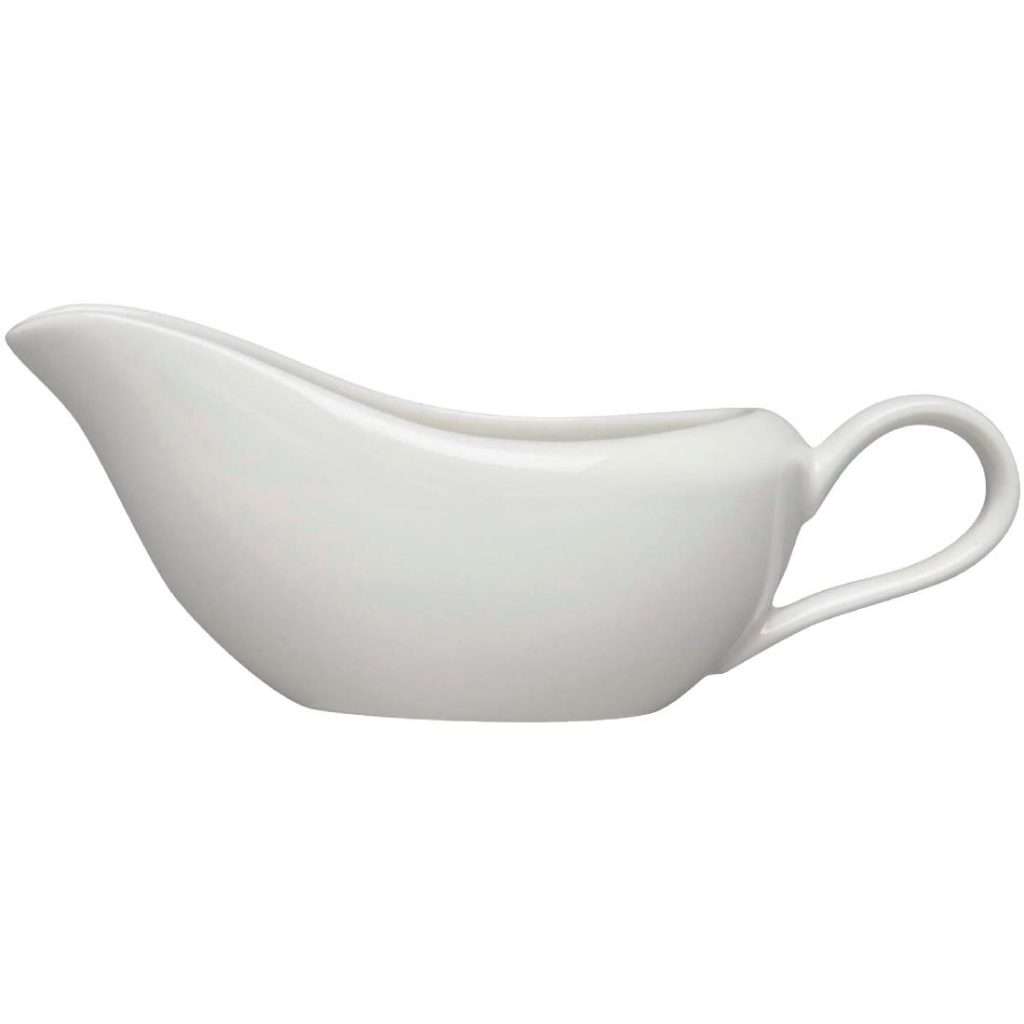 Pure dining elegance whether you have a classic or contemporary setting, featuring gentle curves in a soft creamy glaze. These Elia Glacier sauce boats are the perfect backdrop for food presentation.