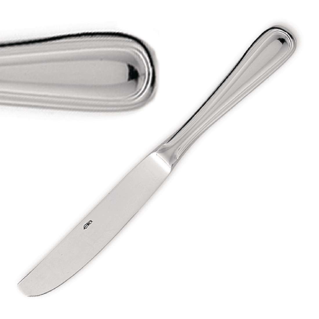 Elia Reed Dessert Knives (12 Pack) are crafted from durable 18/10 stainless steel, offering a polished silver finish that improves any dining experience. Each knife weighs 1.10kg, providing a substantial feel and balance for comfortable use. The classic design features a distinctive border, making them suitable for both modern and traditional settings. These knives are dishwasher safe for easy cleaning, ensuring they remain a staple at your table.