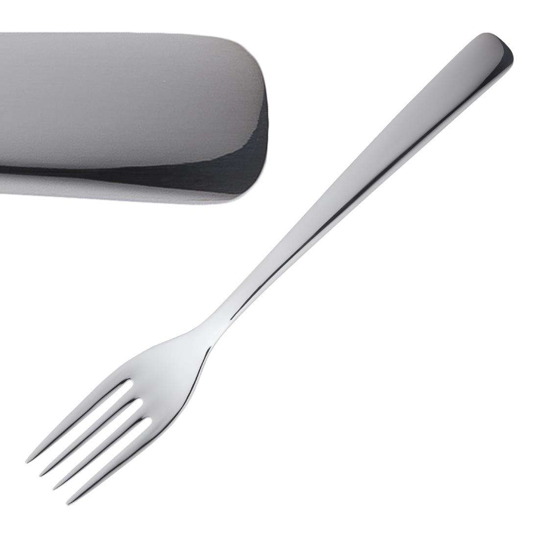 Elia Virtu Dessert Forks are crafted from premium 18/10 stainless steel, ensuring durability and a polished look. Each fork measures 190mm in length and weighs 470g, providing a comfortable grip for effortless use. The contemporary design features a mirror finish, making these forks perfect for elegant dining or casual desserts. Dishwasher safe for easy cleaning, this 12-pack is ideal for entertaining or everyday meals. Add a touch of sophistication to your table setting.