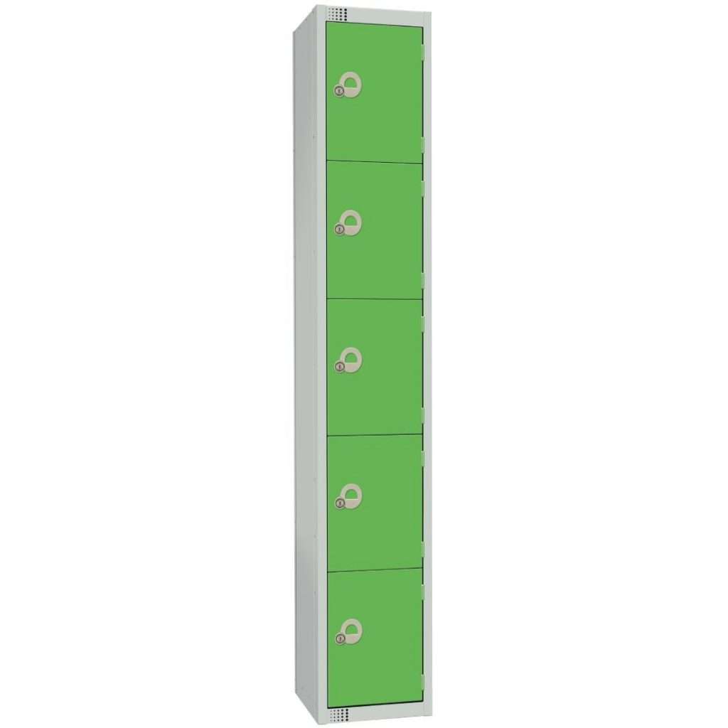 Secure your belongings with the Elite Five Door Manual Combination Locker in green. Crafted from durable powder-coated steel, this locker offers five spacious compartments for organized storage. Weighing 30.75kg, it is designed for easy installation in schools, gyms, or workplaces. Each compartment features a manual combination lock for added security. With a depth of 450mm, it fits seamlessly into any space. Keep your items safe and accessible with this reliable storage solution.