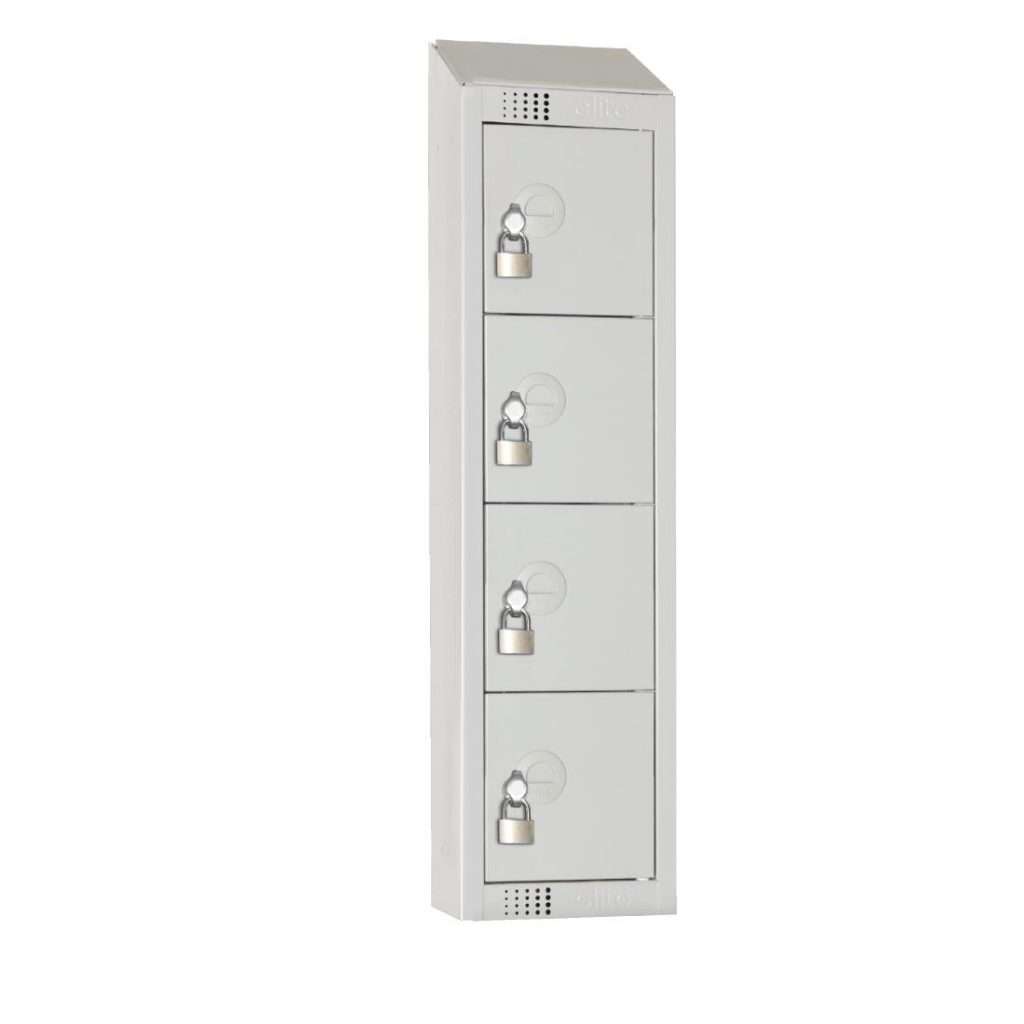 Elite Personal Effects Locker 4 Door Grey Padlock Sloping Top
