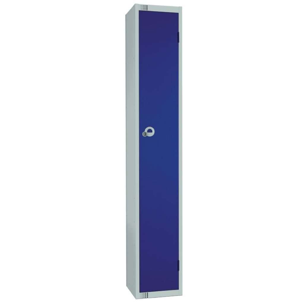 Secure your belongings with the Elite Single Door Coin Return Locker, featuring a sloping top design in blue. Made from durable powder-coated steel, this locker measures 300mm deep and weighs 22kg, offering a reliable storage solution for schools, gyms, and workplaces. Its coin return feature adds convenience, making it perfect for shared environments. Keep your items safe and organized with this sturdy locker.