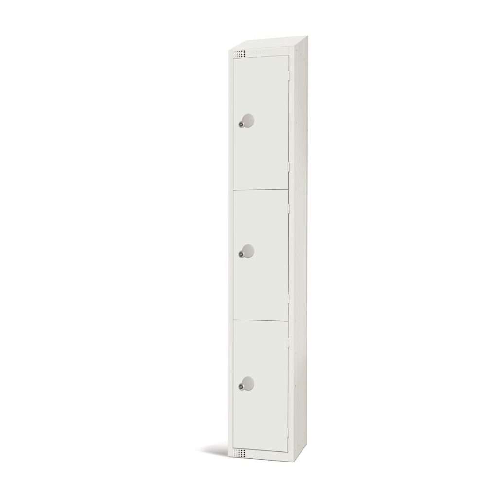 Secure your belongings with the Elite Three Door Camlock Locker, designed for durability with powder-coated steel. Measuring 450mm deep and weighing 23kg, this locker provides ample storage for personal items in schools, gyms, or workplaces. The sloping top prevents clutter and maintains a tidy appearance. Ideal for shared environments, it combines functionality with a sleek design. Keep your space organized with this reliable locker.
