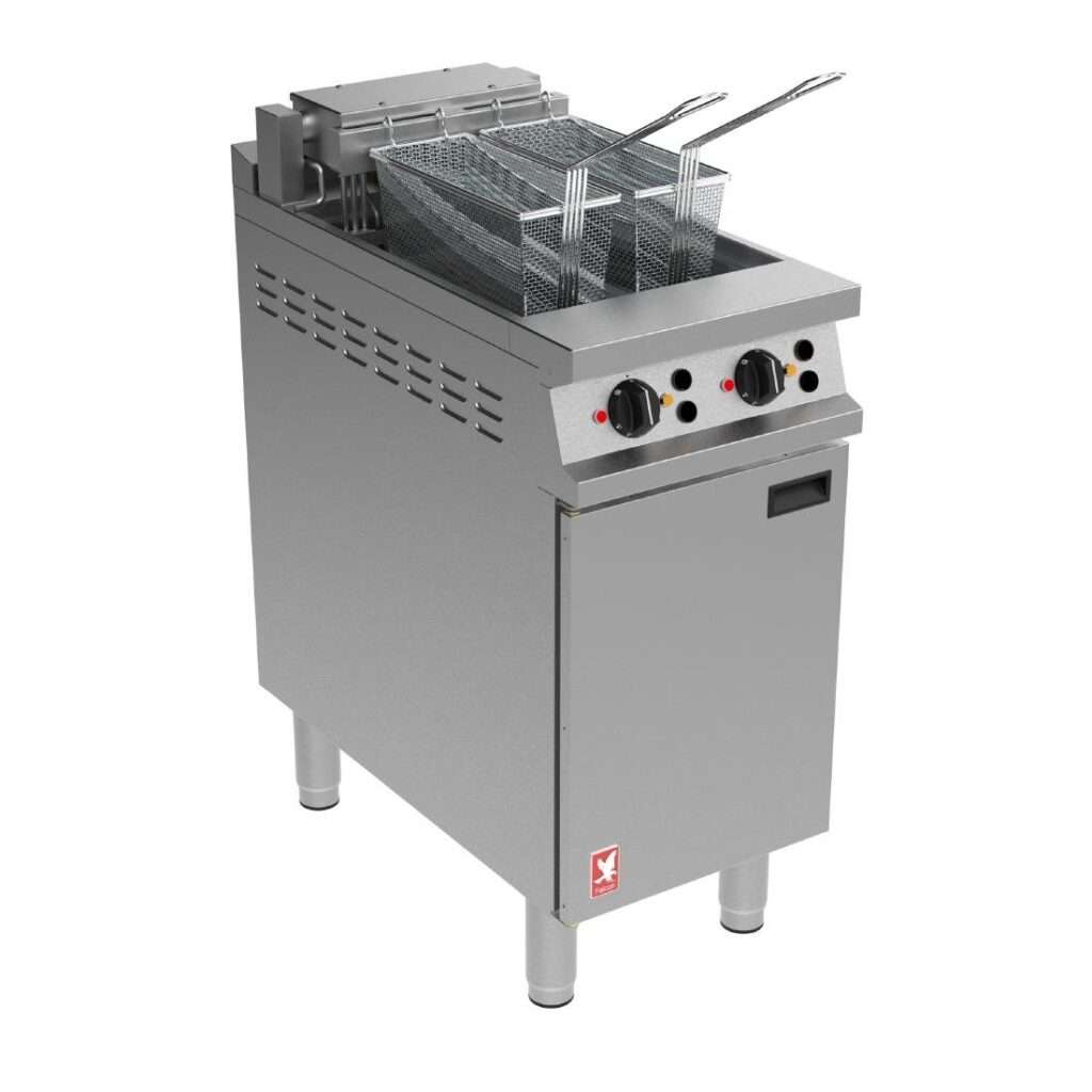 Falcon Dominator Plus E3845F2X Twin Pan Electric Twin Filtration Angel Fryer on Feet