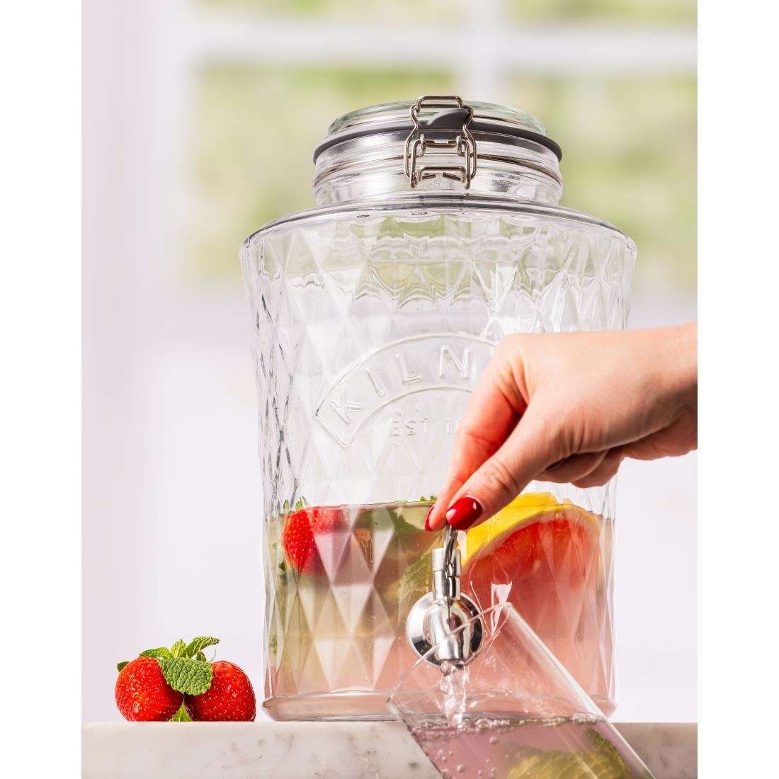 Serve and infuse drinks with style and character in Kilner’s 5Ltr Diamond drinks dispenser. Especially well-suited to fruit juices, cocktails and soft drinks, the dispenser’s generous capacity reduces the need to refill and offers plenty of space for ice on top. Its innovative new seal design releases liquid via air pressure, so the lid can stay on during service – keeping your drinks fresher for longer.