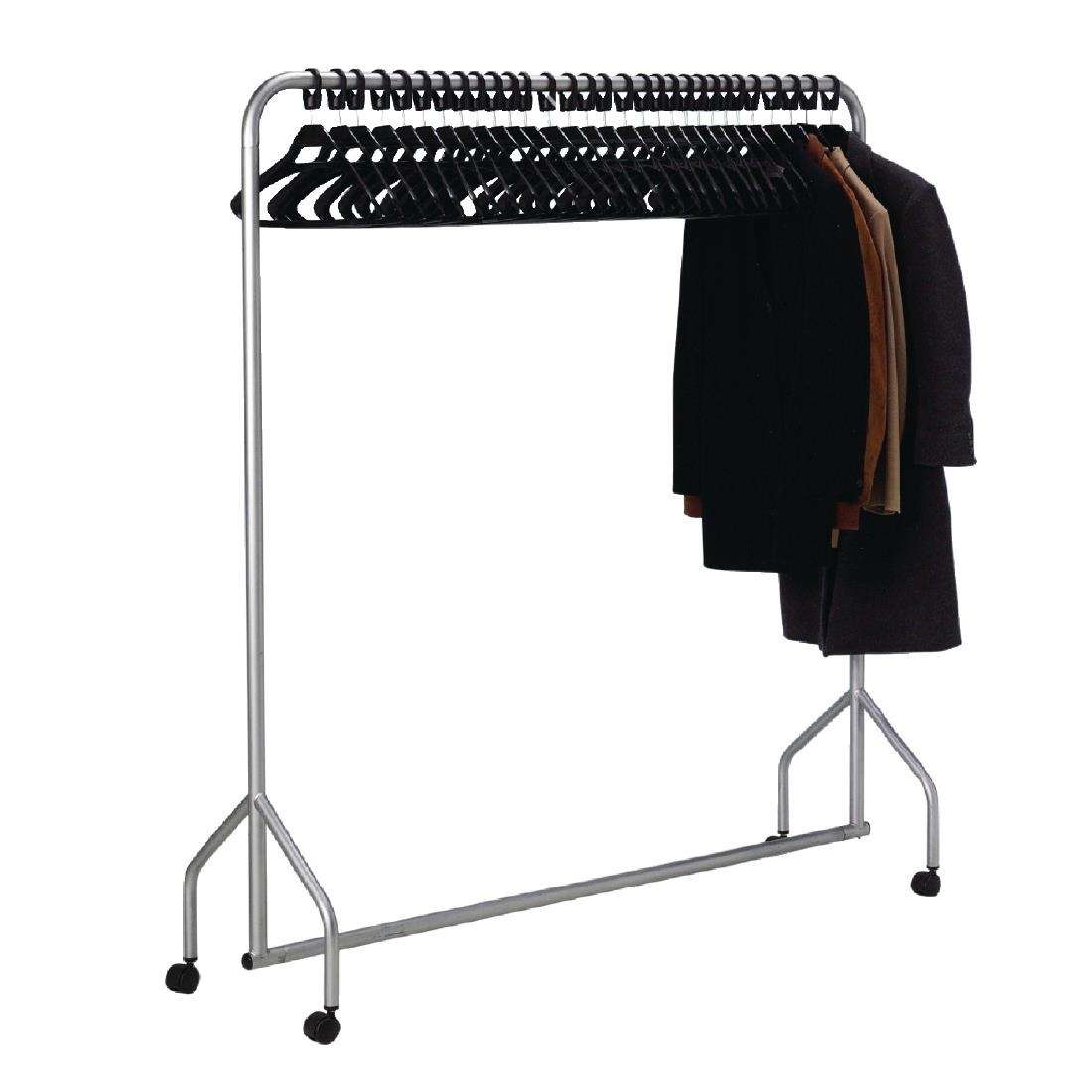 Discover the Bolero Metal Garment Rail, designed for efficient clothing organization in hotels or cloakrooms. Made from durable metal, this rail weighs 9.5kg and comes with 30 hangers, providing ample space for up to 30 garments. Its sturdy construction ensures stability while keeping your attire neatly displayed. Ideal for both commercial and personal use, this rail combines functionality with a sleek design. Keep your space tidy and stylish with this essential garment storage solution.