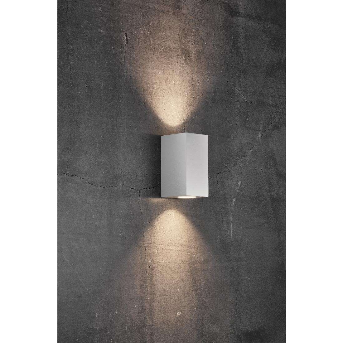 Nordlux Canto Maxi Kubi 2 Outdoor Wall Light in white features a minimalist cube design that improves your exterior with up and down illumination. Measuring 172mm high, 87mm wide, and 100mm deep, it weighs 550g and is made of durable aluminium with an IP44 rating for water splash protection. This light is perfect for sheltered areas like patios and entrances and supports two GU10 bulbs up to 28W for adjustable brightness. Enjoy stylish, efficient lighting in just 3-5 days with a 2-year warranty.