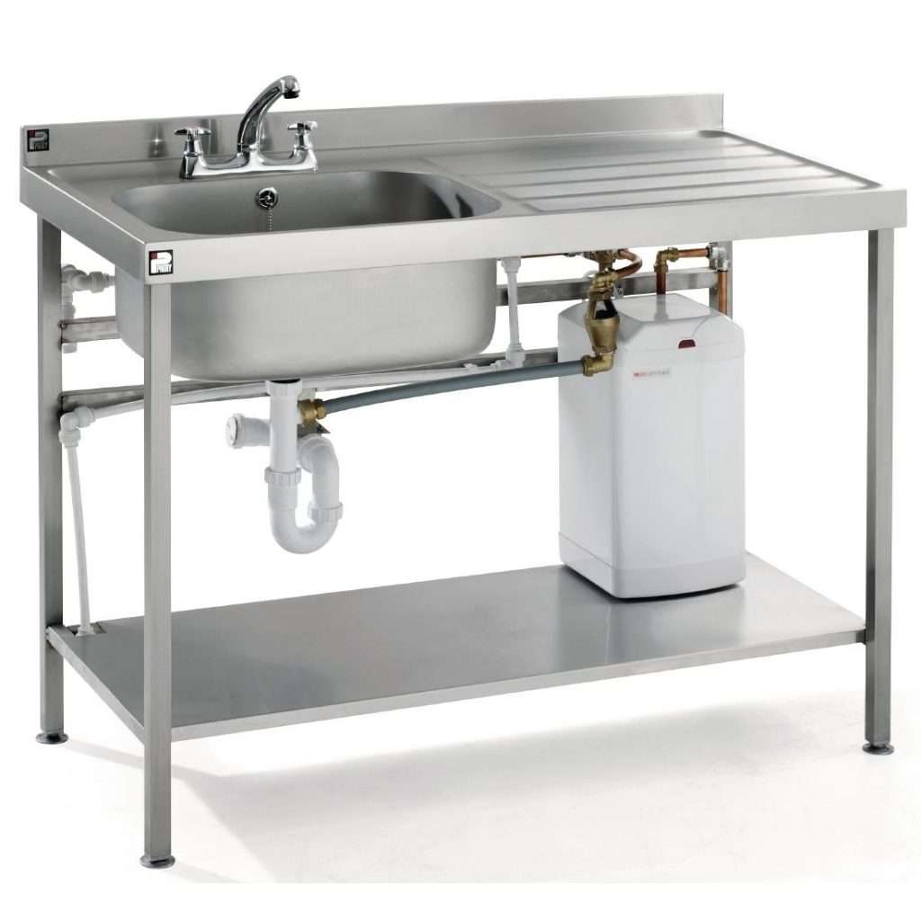 This 1200mm wide Parry sink unit includes an integrated water heater, providing hot sinks of water to businesses with limited hot water or challenging installation locations. Simply and quickly installed via a washing machine hose, the heater plugs in via a regular 13 amp plug for immediate cleaning in busy kitchens. Featuring a grooved draining area and a firm, secure undershelf, this 1200mm wide sink unit is delivered fully assembled.