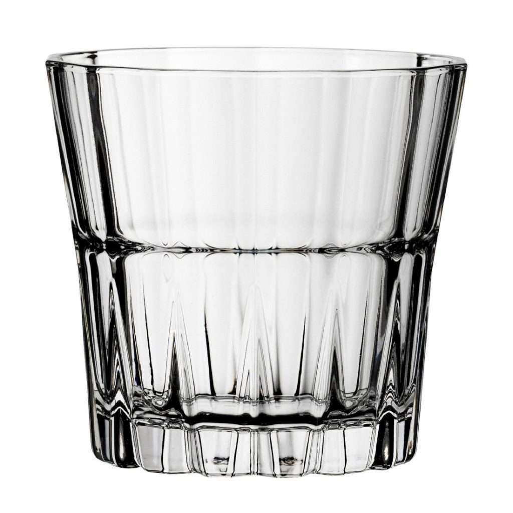 Pasabahce Sword tumblers deliver reliable performance and timeless style for busy bars, restaurants and hospitality settings. Their classic fluted conical profile and deep vertical facets provide a distinctive light catching look that elevates any table service.