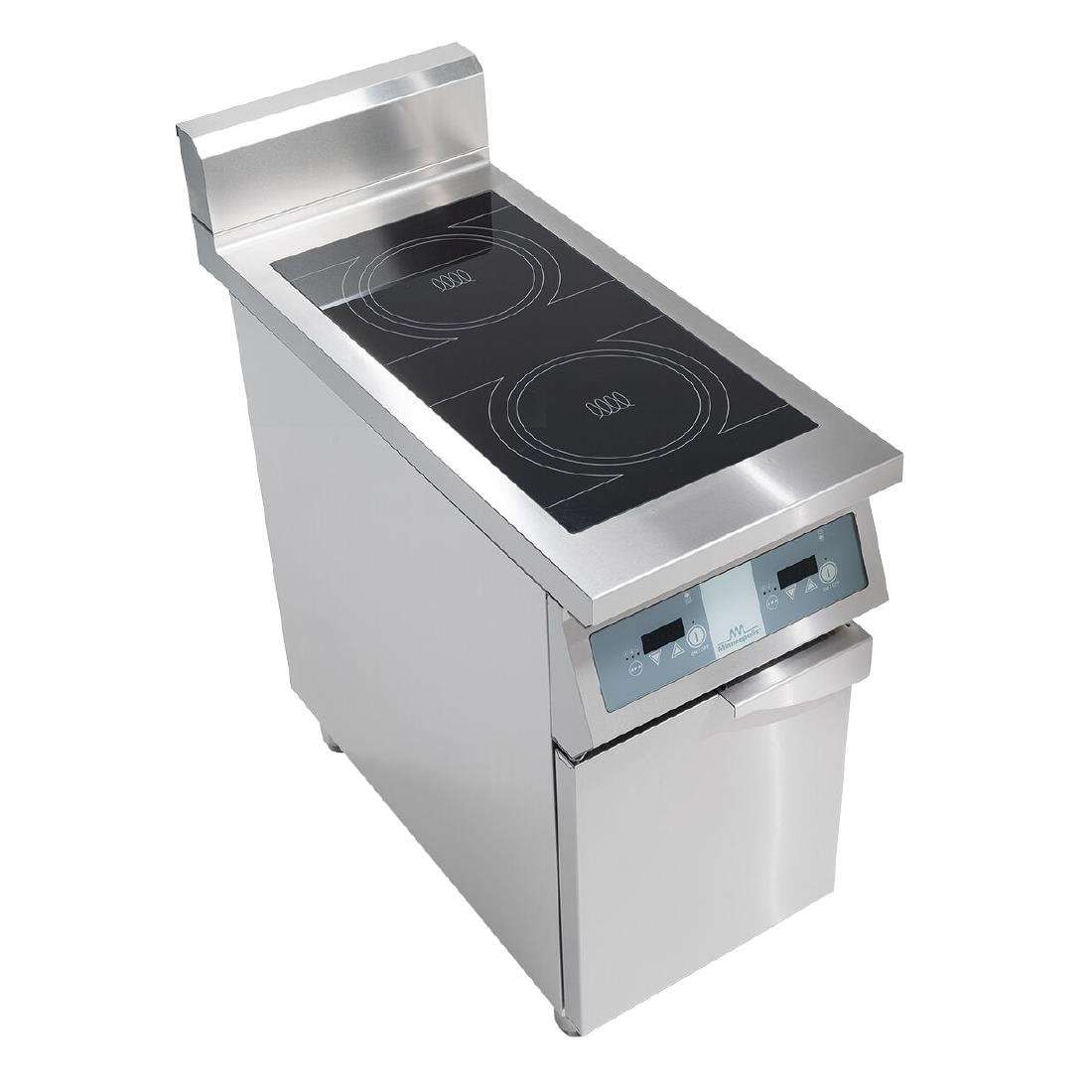 Double induction hob features two powerful 3.5kW cooking zones for efficient cooking in busy kitchens. The silver Sirman IH35X270 has independent digital controls, allowing precise temperature and time adjustments. Its 700mm depth fits seamlessly into existing setups, while a spacious base compartment offers essential storage. Designed for three-phase fuel use, it includes an energy-saving auto shut-off after two hours of inactivity.