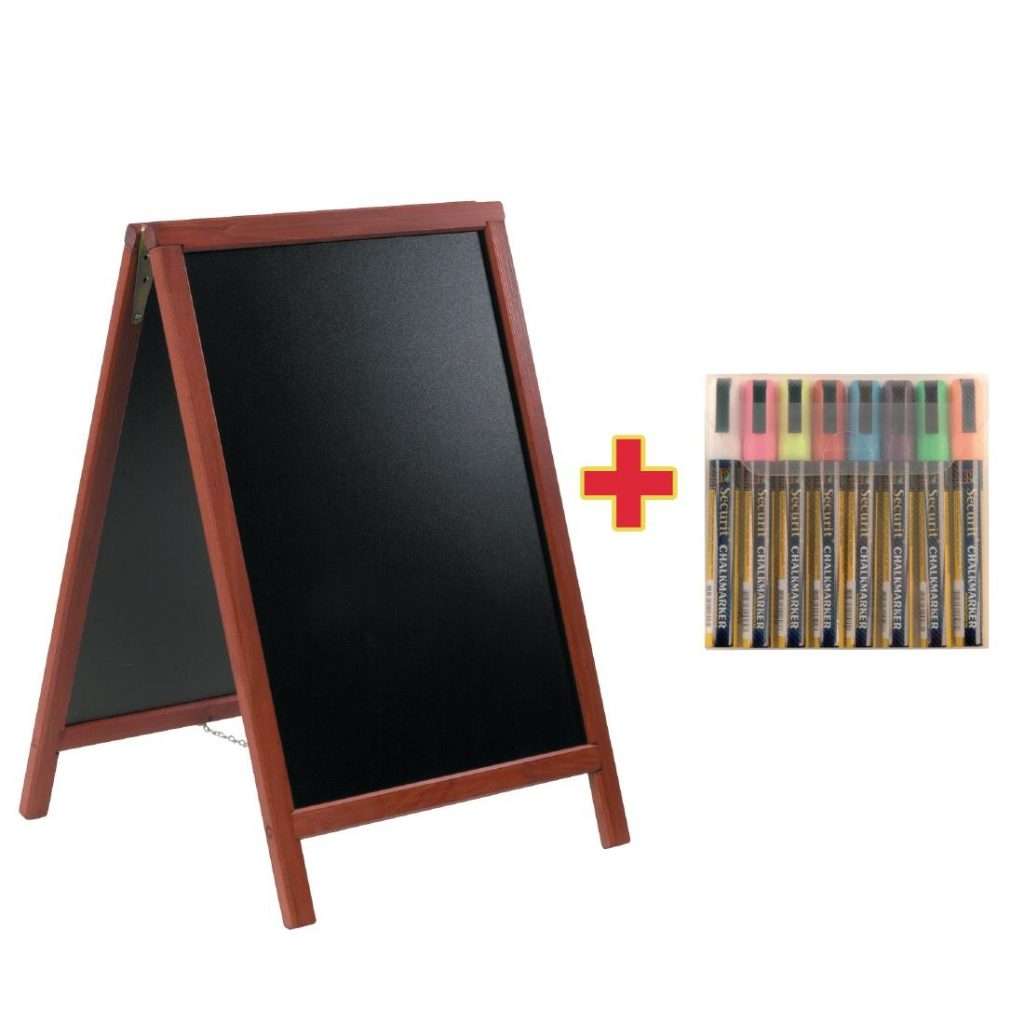 Heavy, durable solid wood frame pavement board in a mahogany colour finish. Now with a free pack of marker pens!