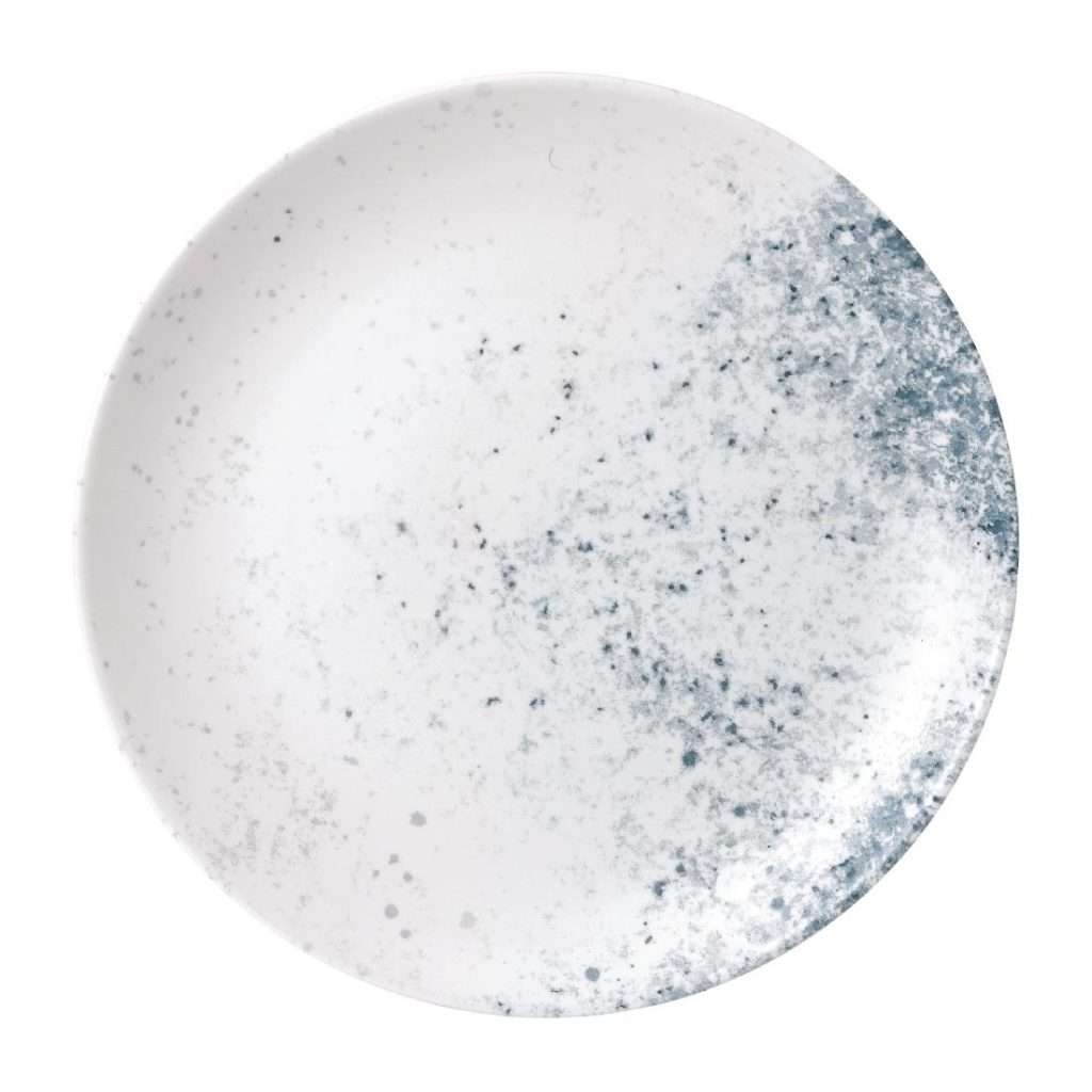 Studio Prints Haze Blue Coupe Plate, 8 2/3" (217mm), is crafted from durable Super Vitrified Porcelain, ideal for everyday dining or special occasions. This set includes 12 plates, each weighing 6.62kg in total, perfect for restaurants or family gatherings. The subtle blue hue adds a touch of elegance to your table setting. Enjoy reliable quality and a stylish design with every meal.