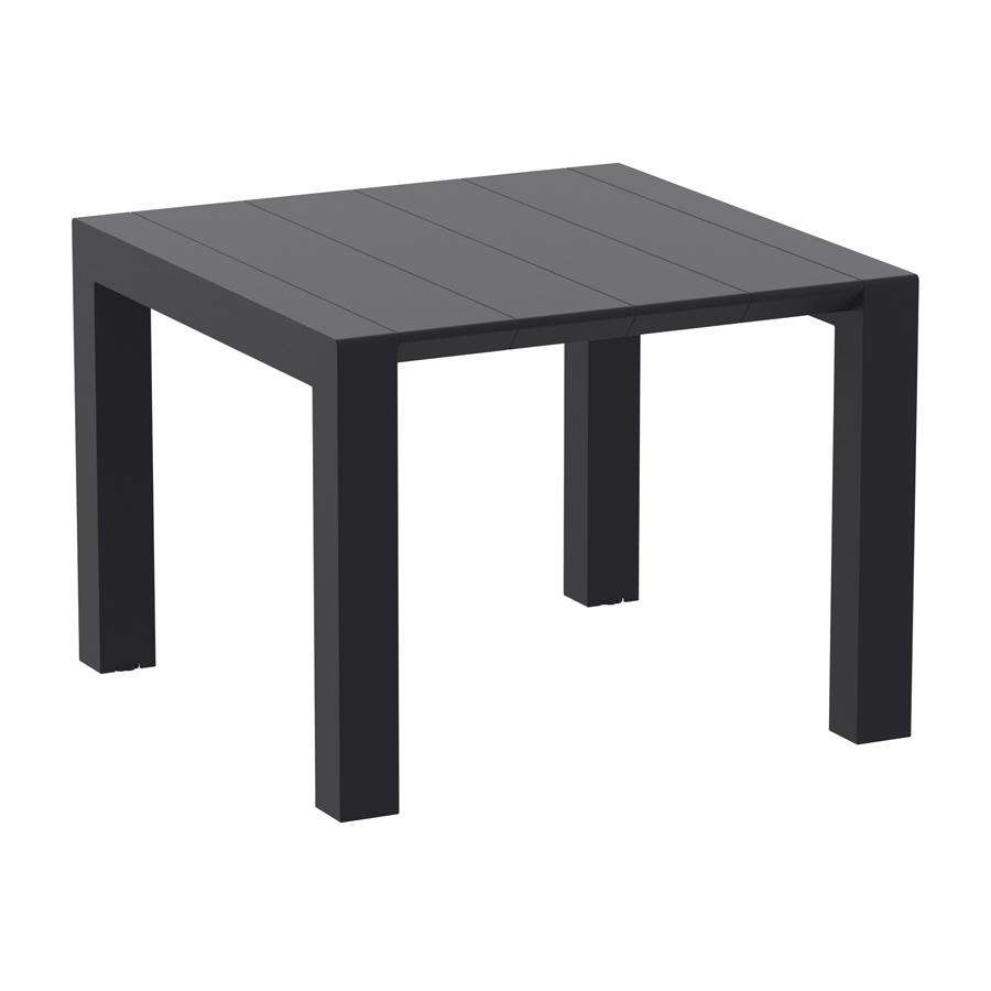 Vegas Table - Black offers durability and weather resistance, perfect for indoor and outdoor light commercial use. Made from high-quality resin, this table measures 75cm in height, with an adjustable width of 100-140cm and a depth of 100cm. Weighing 24kg, it features a smart extending mechanism for easy adjustment. The fade-resistant color ensures it stays looking great over time. This versatile piece combines style and functionality for any setting.