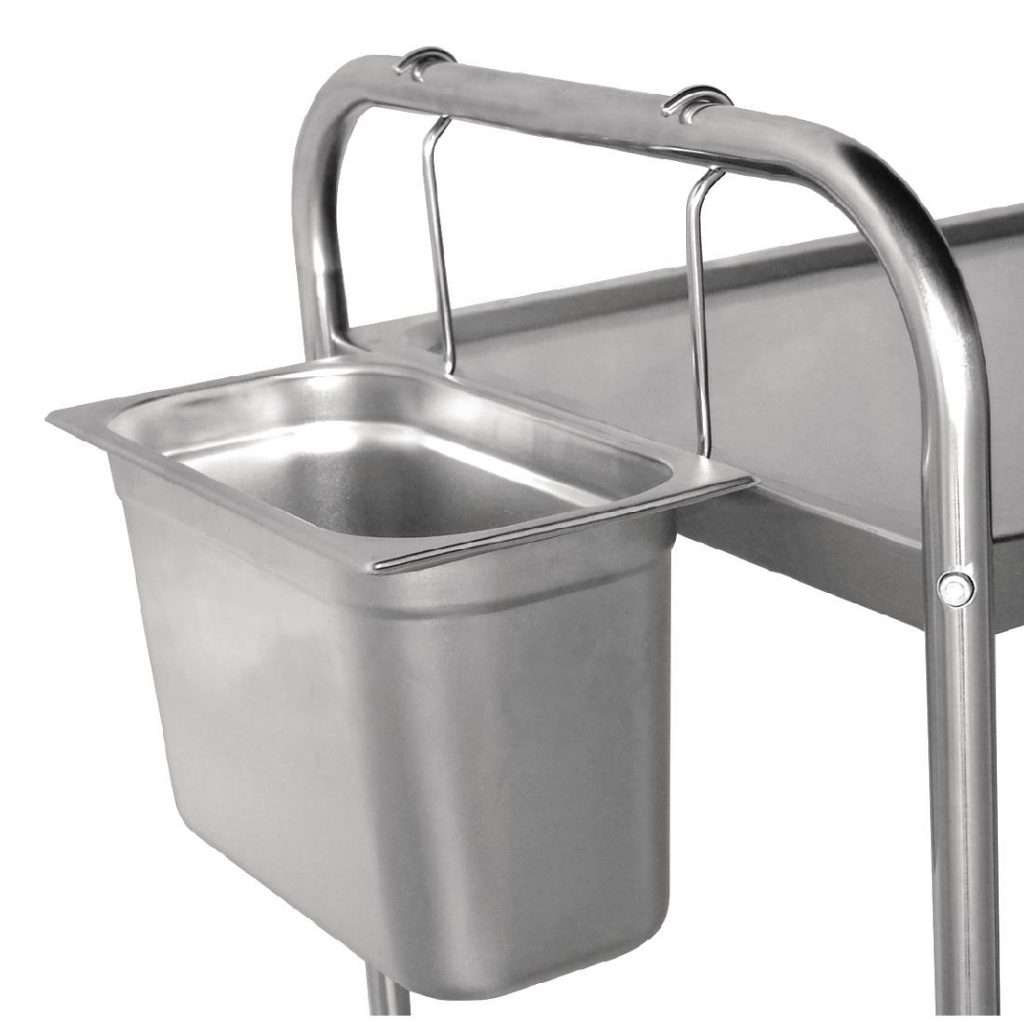 Vogue Hanging Refuse Collector features a durable stainless steel design with a 7.5L capacity, perfect for efficient waste management in catering settings. Weighing just 1.22kg, it includes a wire hanging frame and a 1/3 gastronorm container for easy access and cleaning. Ideal for restaurants and events, this refuse collector helps maintain a tidy workspace while ensuring practicality. Keep your kitchen organized with this essential tool.