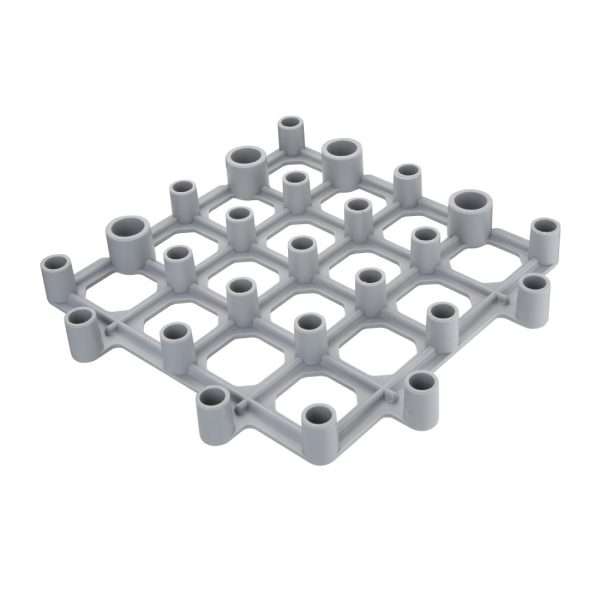 Square polypropylene racks with open hole design which allows air circulation.