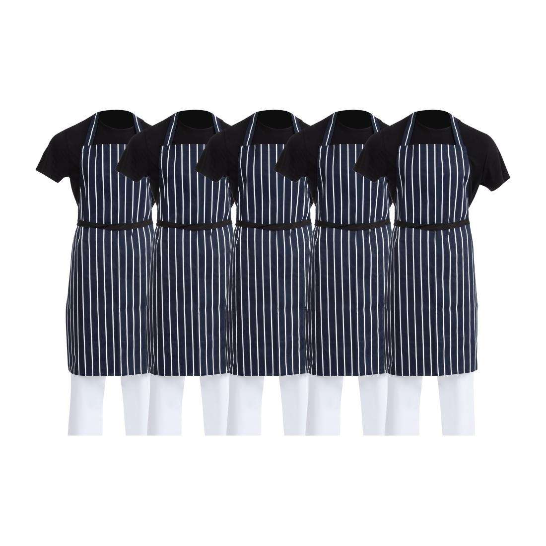 Whites Butchers Stripe Bib Aprons Blue/White (5 Pack)